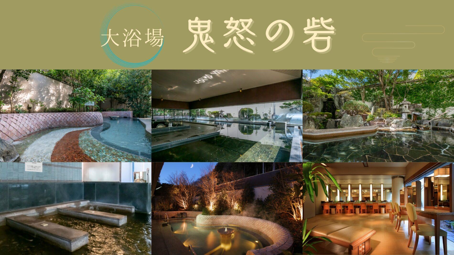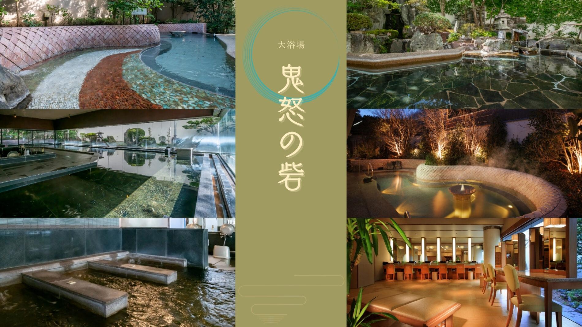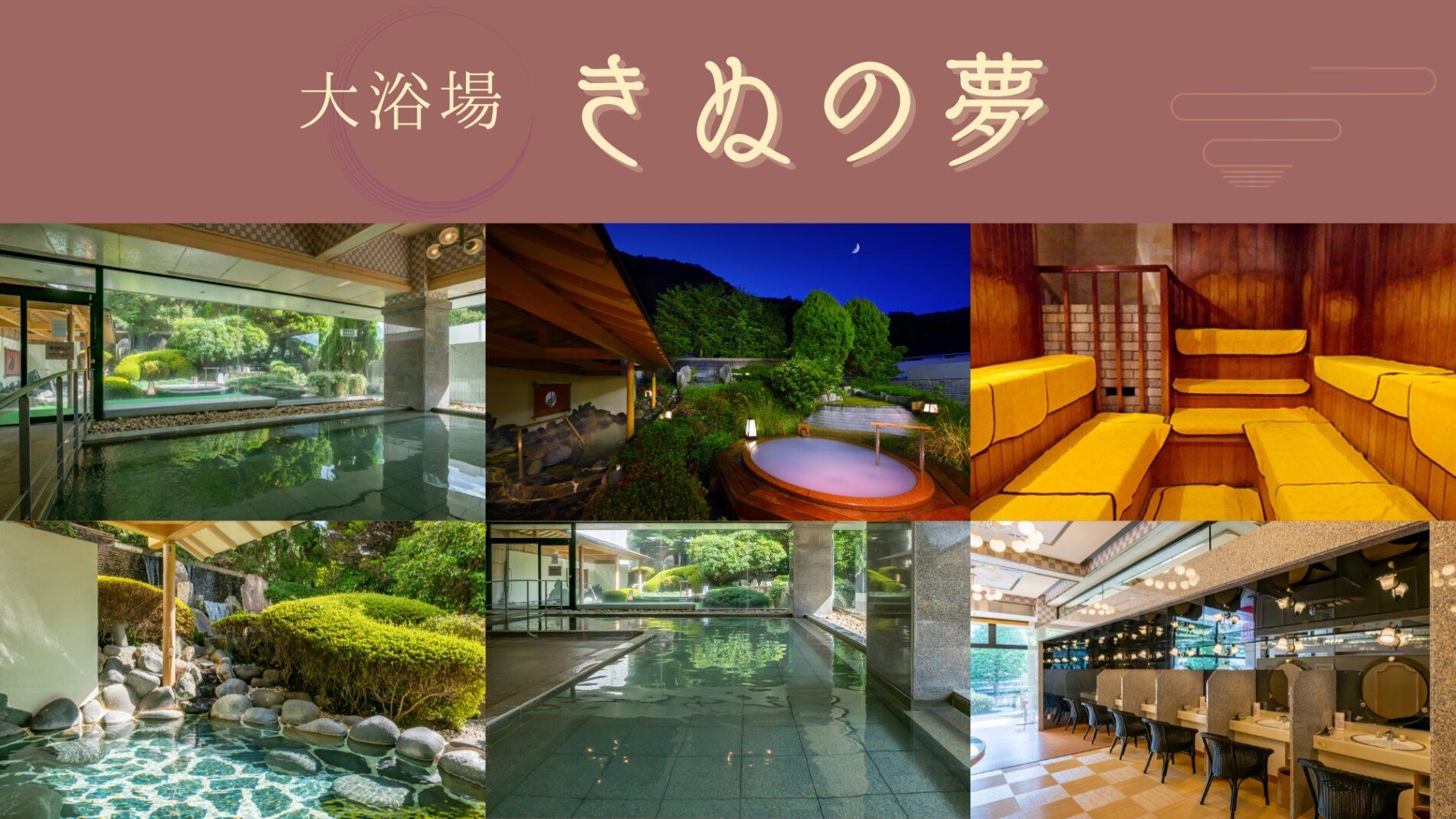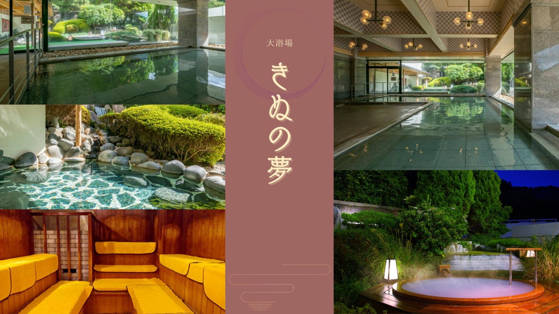 広々としたふたつの大浴場『鬼怒の砦』と『きぬの夢』それに付随するそれぞれふたつの露天風呂。庭園に面した開放的な眺めが心まで癒やします。男女のお風呂が入れ替え制なので、あわせて九つの湯がお楽しみいただけます。