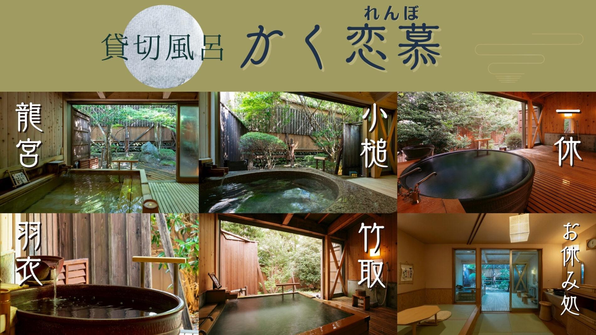 贅沢なプライベート空間で静けさにまどろむ湯の香をご満喫ください。※ チェックイン時にご予約を承っております。